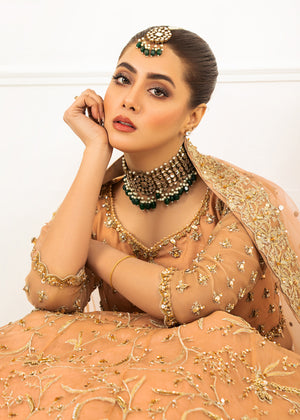 Step into a fairytale with the Masooma Lehenga Choli Set. Its captivating organza choli features a round neck and fluttering short sleeves, resplendent with nakshi, cut dana, and sparkling sequins. The lehenga, a sequin-speckled masterpiece, boasts lavish embellishments that weave an intricate dance of elegance. A true vision of celebratory splendor!
