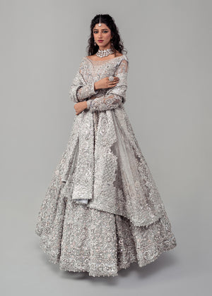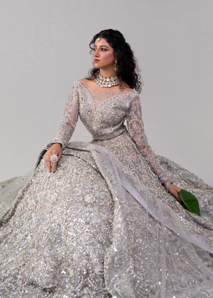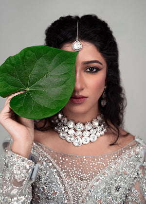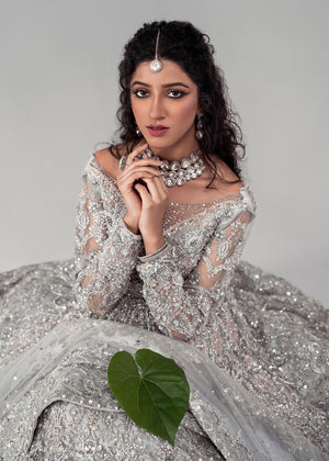 Behold the Silver Lining lehnga choli, a masterpiece of unwavering elegance. Revel in its radiant silver hue, lavishly accented with silver and green, weaving luxury with sophistication for a truly majestic ensemble.