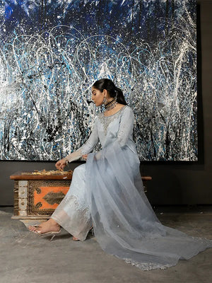 Behold the elegance of Fasana, a treasure from the Ghazal Collection. Medium silk weaves interlace with sumptuous handwork, while an organza dupatta whispers tales of grace with its hand-embellished corners. A spectacle of refined artistry.