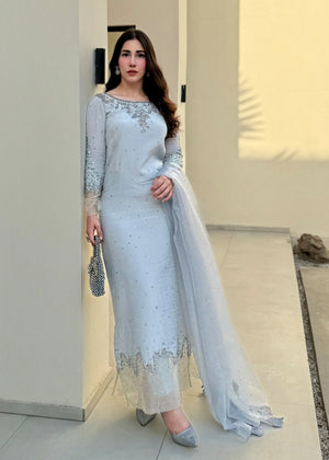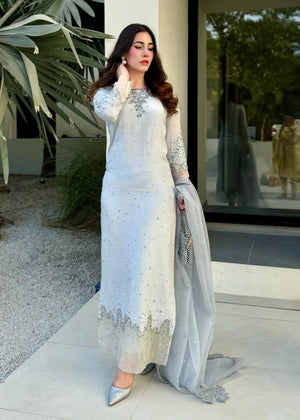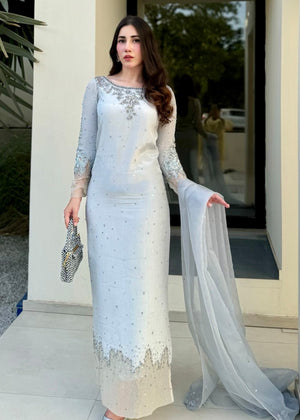 Behold the elegance of Fasana, a treasure from the Ghazal Collection. Medium silk weaves interlace with sumptuous handwork, while an organza dupatta whispers tales of grace with its hand-embellished corners. A spectacle of refined artistry.